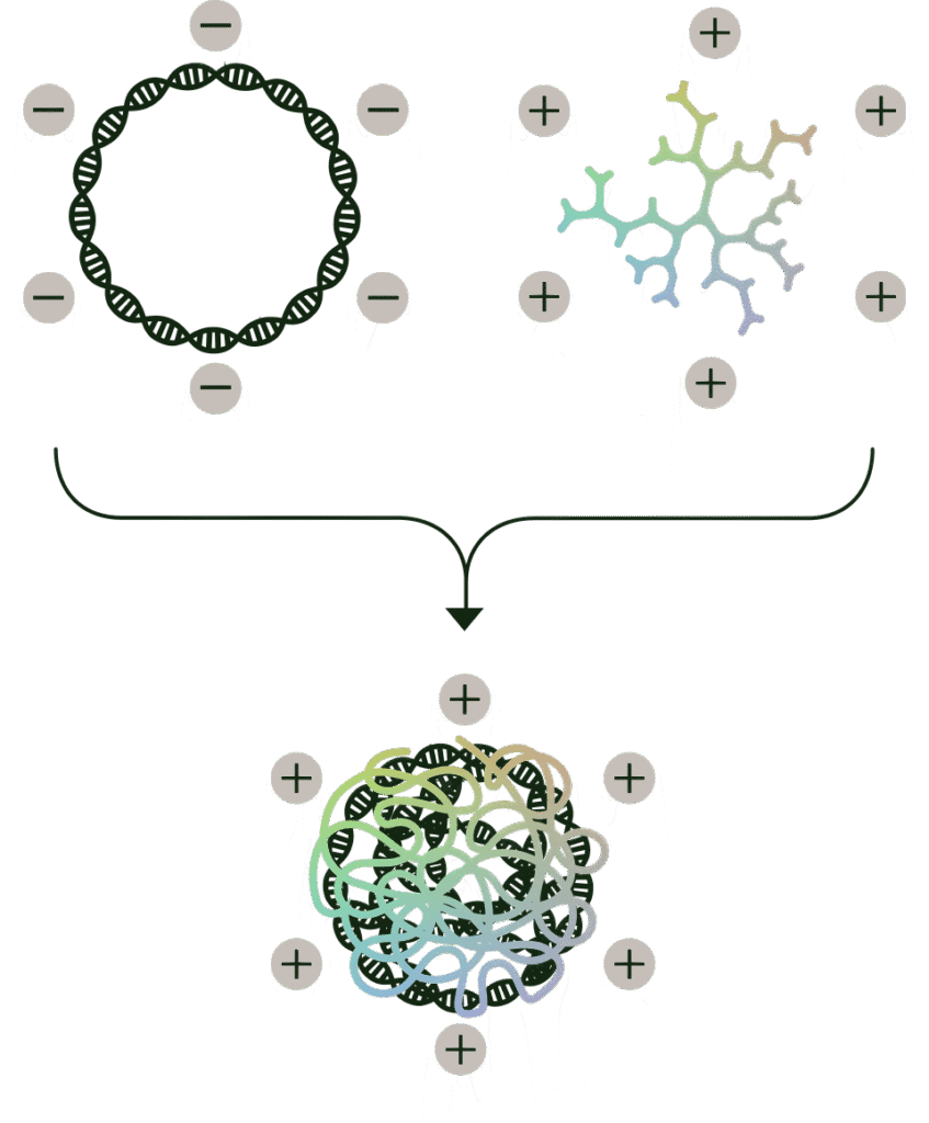 Minicircle’s technology uses episomal DNA plasmids to deliver specific genes into human cells. These plasmids remain outside the chromosome, meaning they do not integrate into your DNA. Prior to injection, DNA is complexed with a transformation reagent for 30 minutes to be prepared for absorption by the cell.