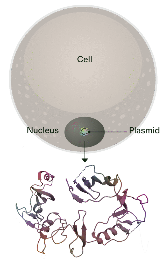 After the plasmid is absorbed into the cell, proteins are secreted to deliver benefits.